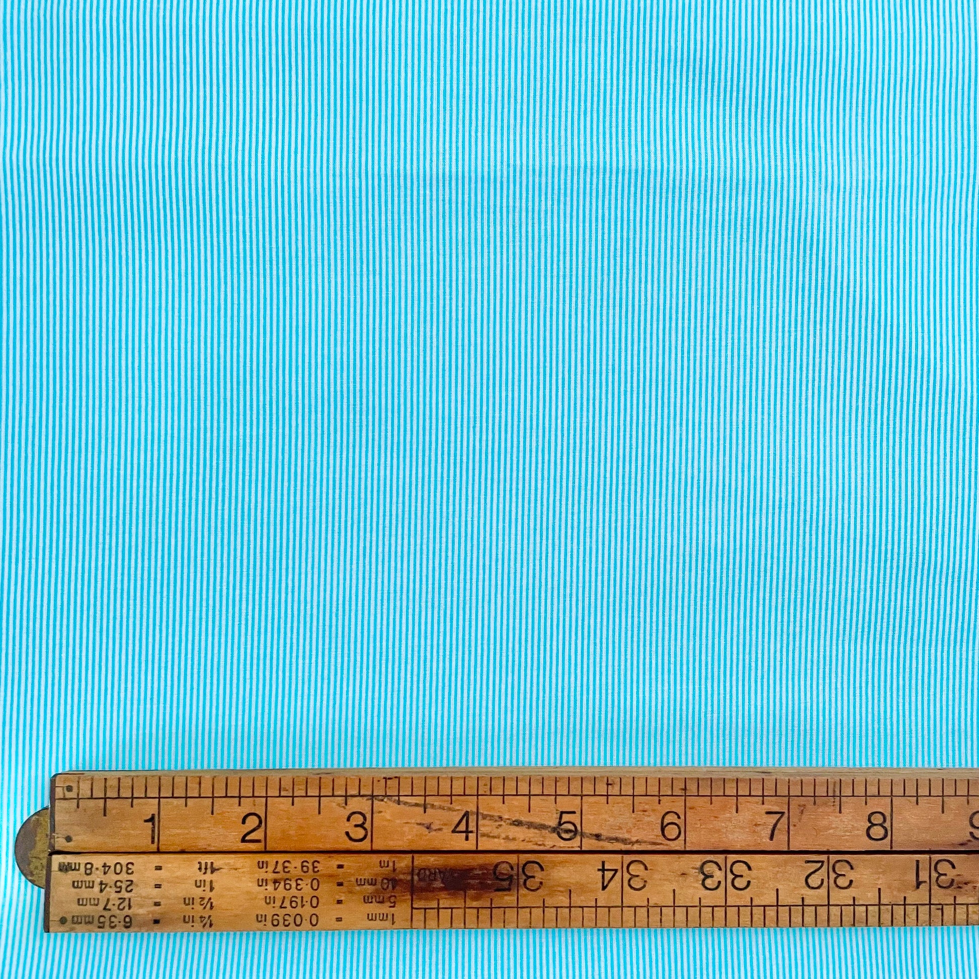A beautiful fine stripe of neon aqua and white from Petit Pan. 100% cotton Oeko-Tex certified.
