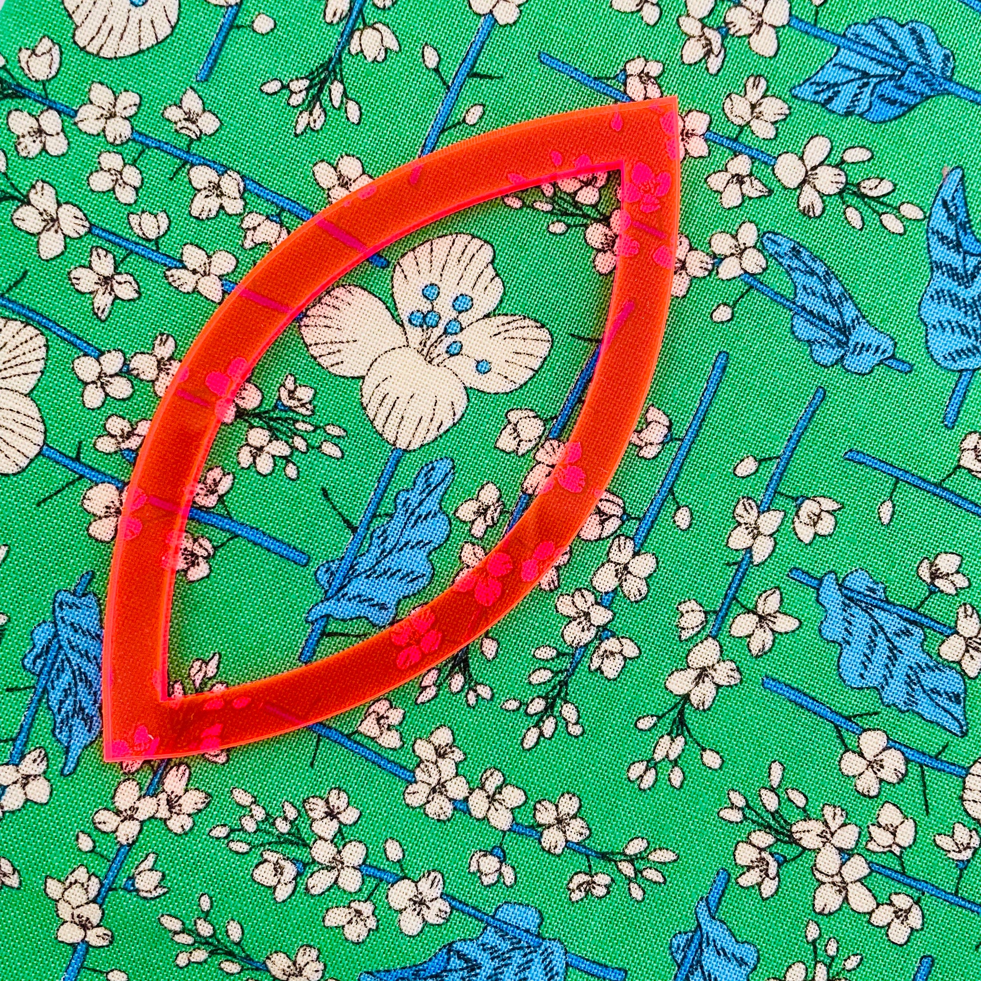 Made from a striking neon pink 3mm acrylic it is durable and beautiful. Use the seam allowance to rotary cut your shape and then remove the allowance to mark sewing lines. (Note: a small rotary cutter is advisable for curved pieces.)