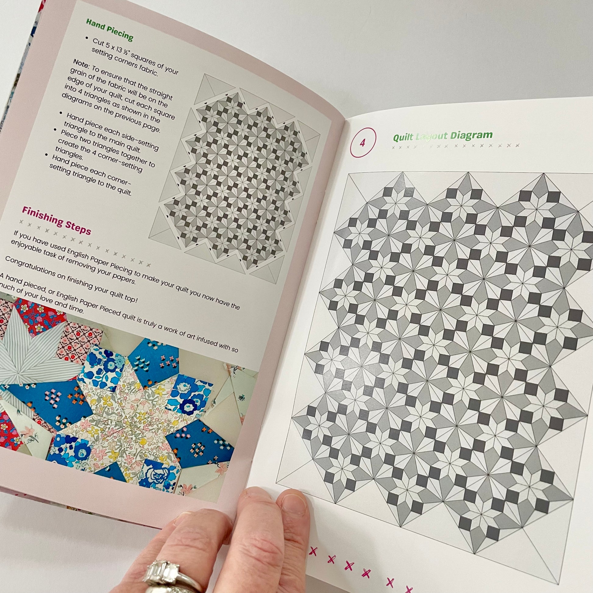 The paper pieces kit comprises papers for 31 blocks. Note: Papers for the side and corner setting triangles are not included. Clear instructions are provided for creating a simple Mylar template to allow you to piece the corner and side triangles.