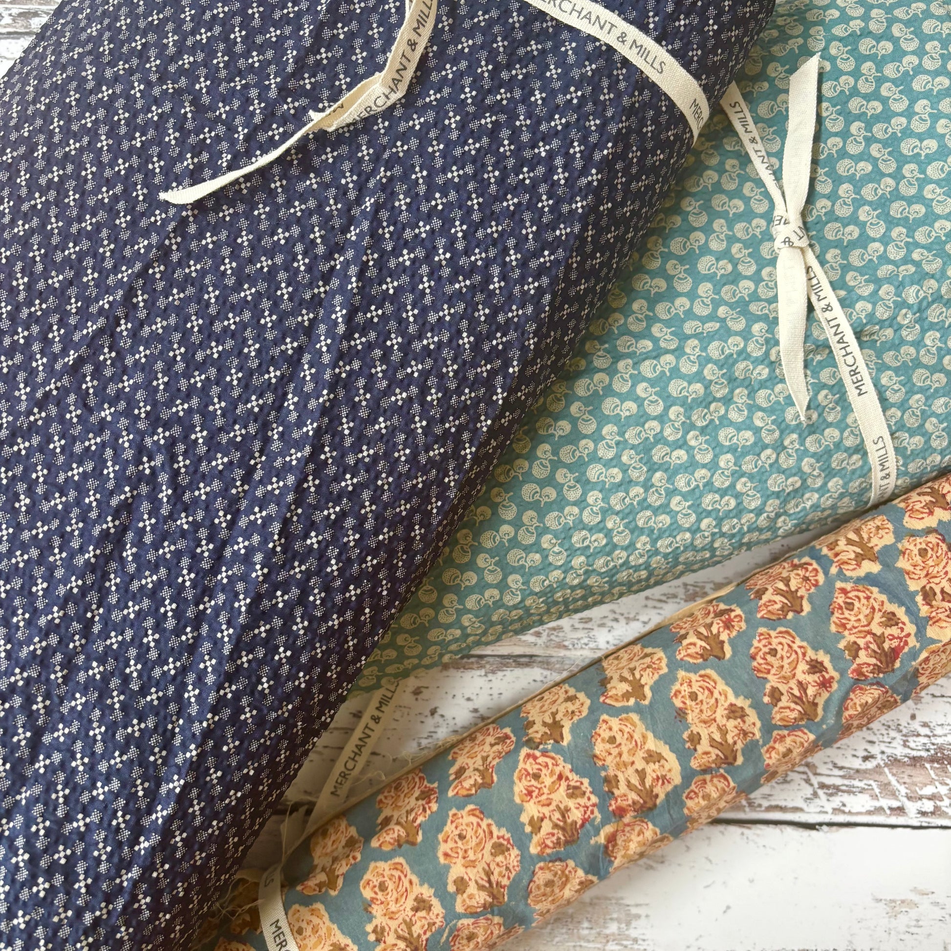 Donguri is a Merchant & Mills designed print. The small acorn motif is printed on a 100% organic cotton seersucker base creating a delicate and vintage style fabric.
