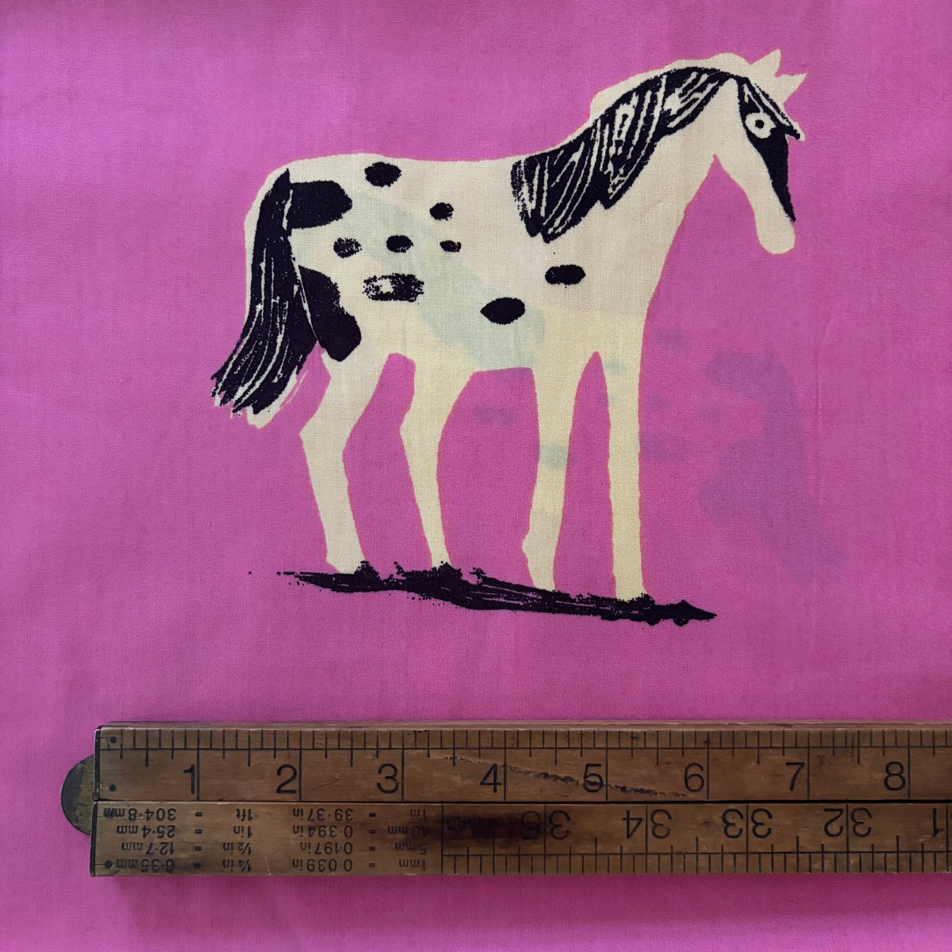 Heather Ross Meadows Quilt Back - Wild Ponies in Hot Pink - 108” wide