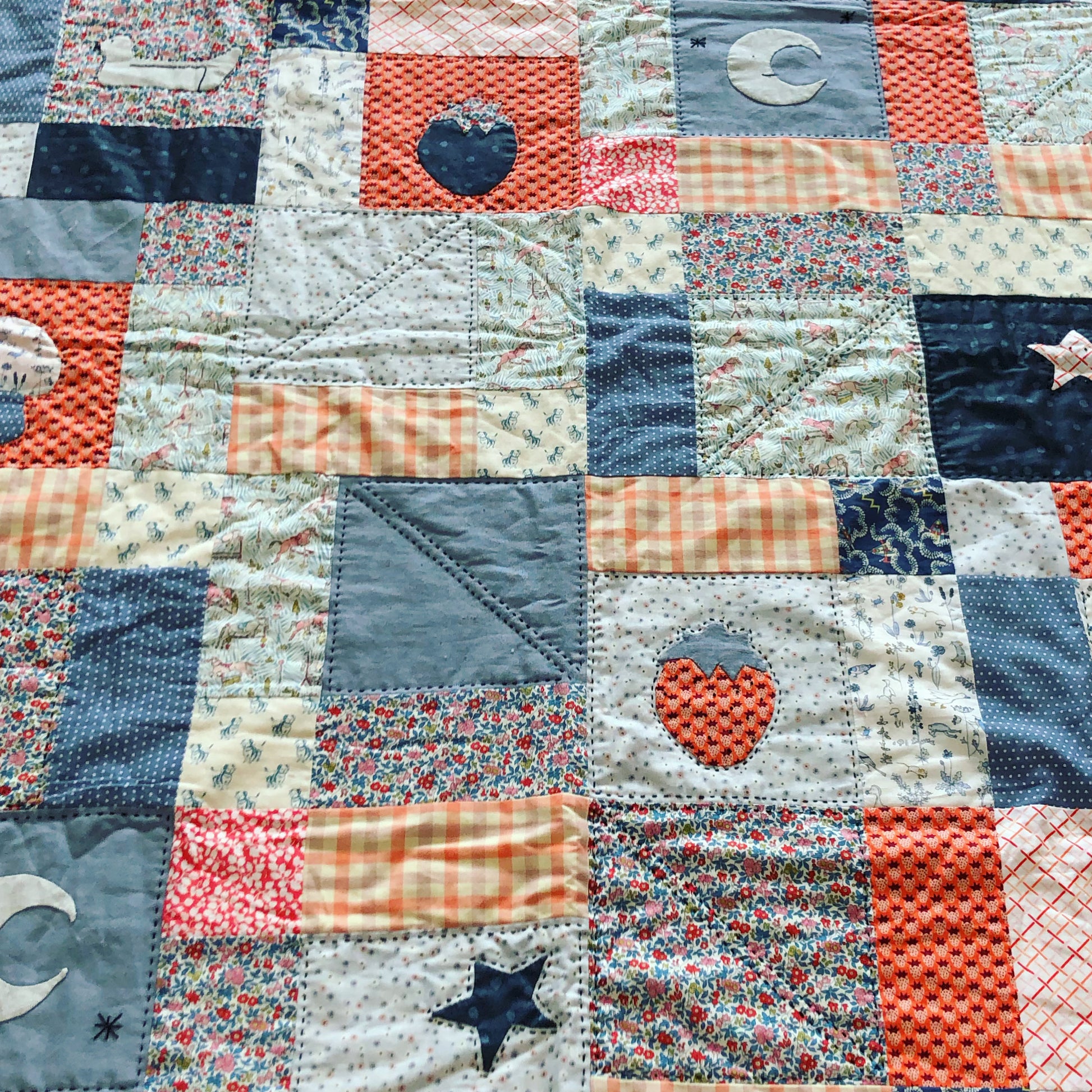 Written pattern to make your own Mulberry Baby Quilt. This quilt pattern is suitable for beginners and is a quick make allowing you to gift easily or make for your baby. Finished size is 40 inches by 49 inches. Suitable for machine or hand piecing. The pattern features needle turn appliqué which can be easily substituted for your own preferred method if you desire. Easily customisable to make a truly unique item for your home or a loved one. I think you will love making this quilt!