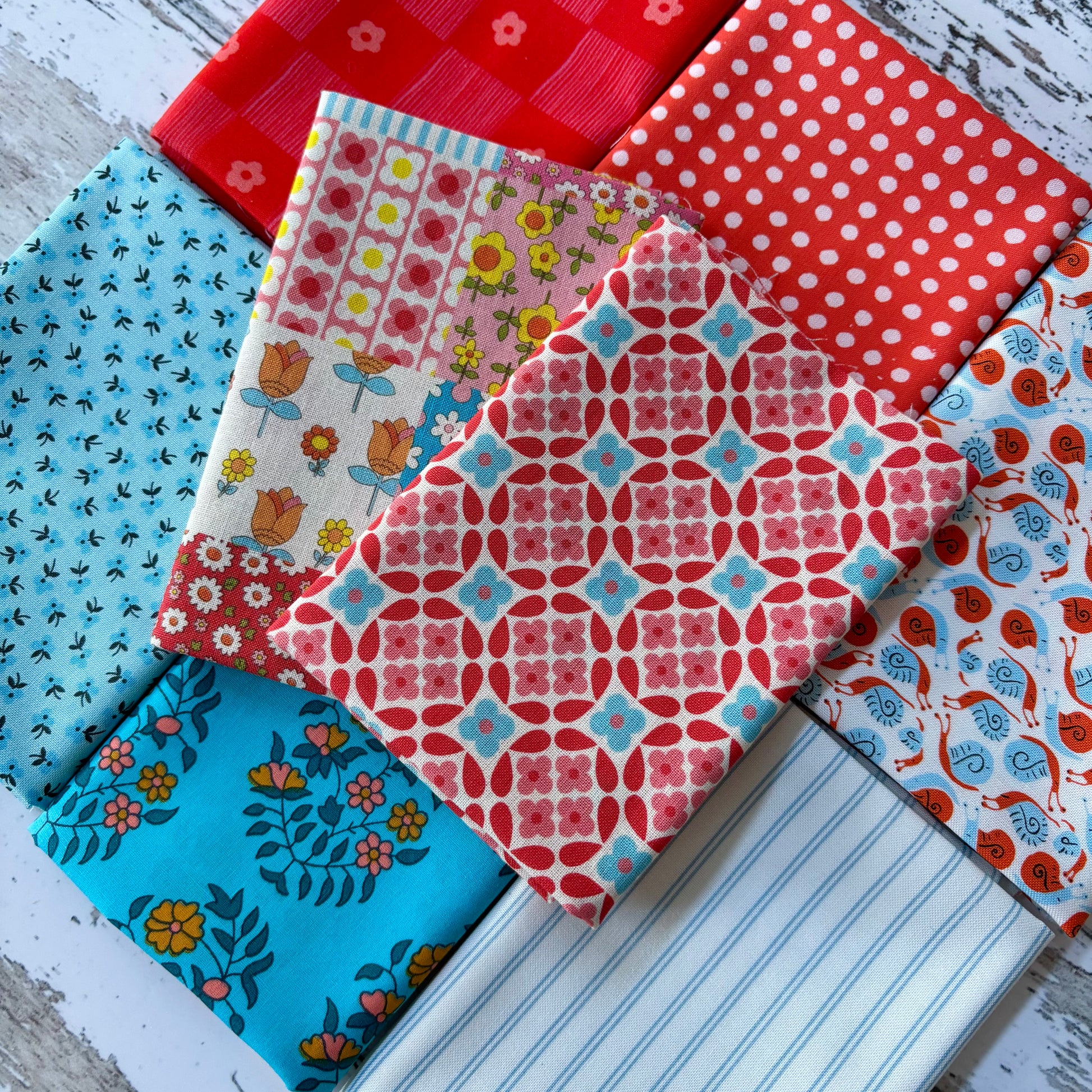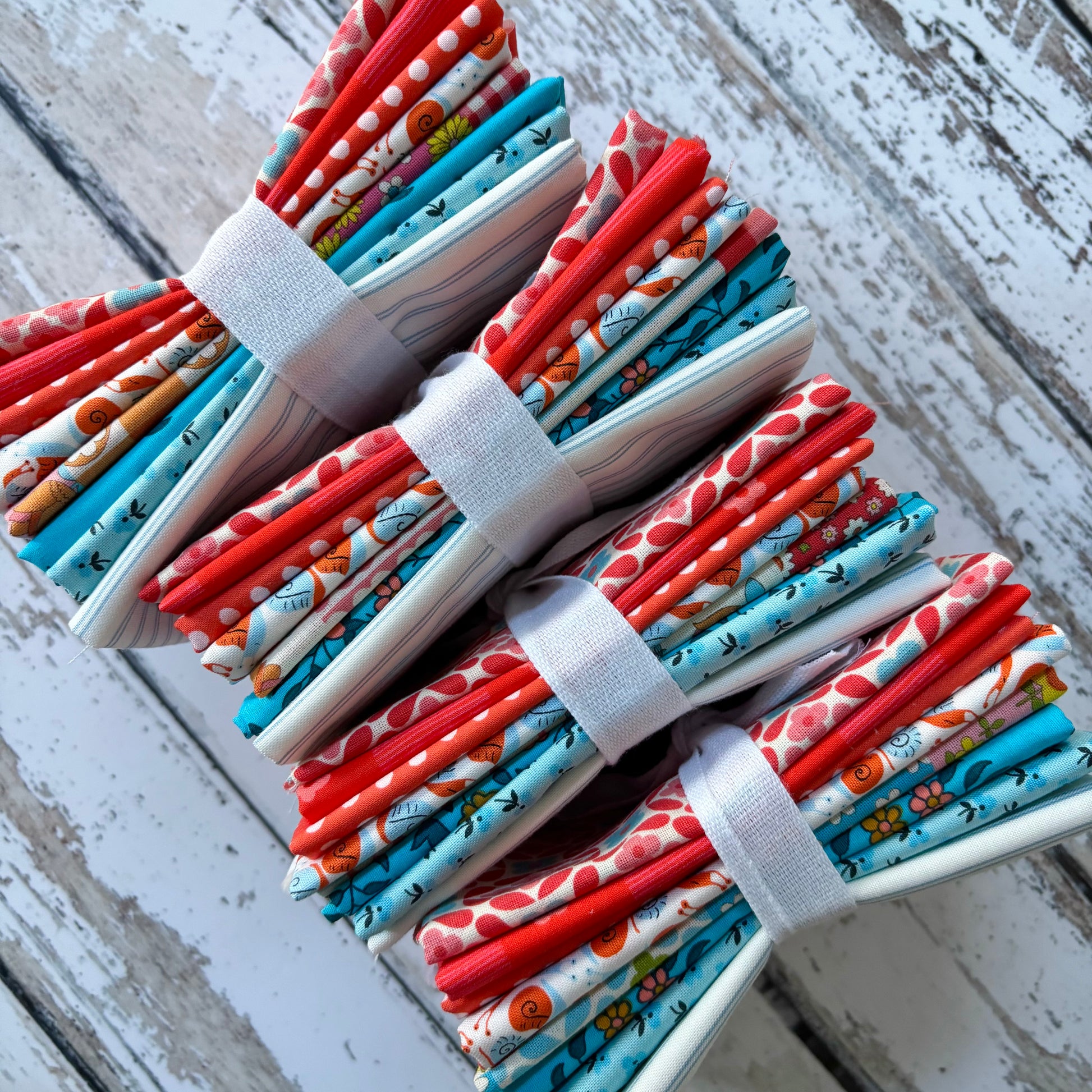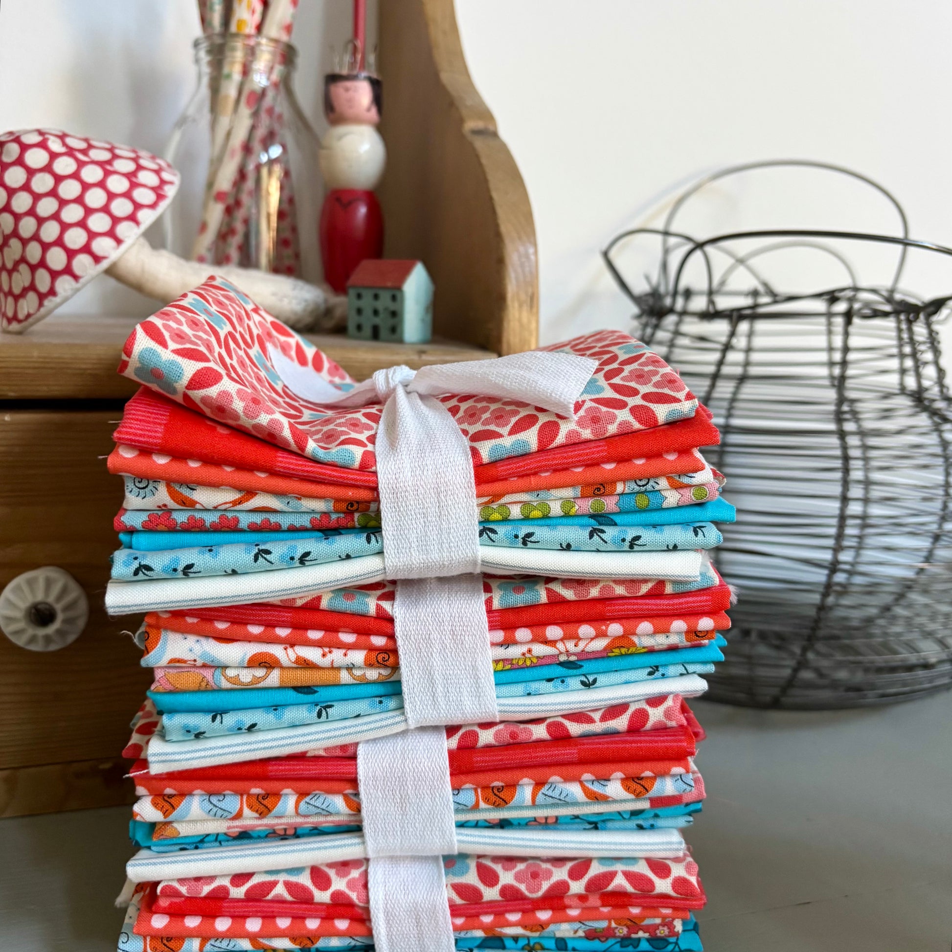 This bundle includes a mix of fabrics sourced in Japan, Petit Pan and other lovely quilting cottons from Denyse Schmidt, Heather Ross and Moda.