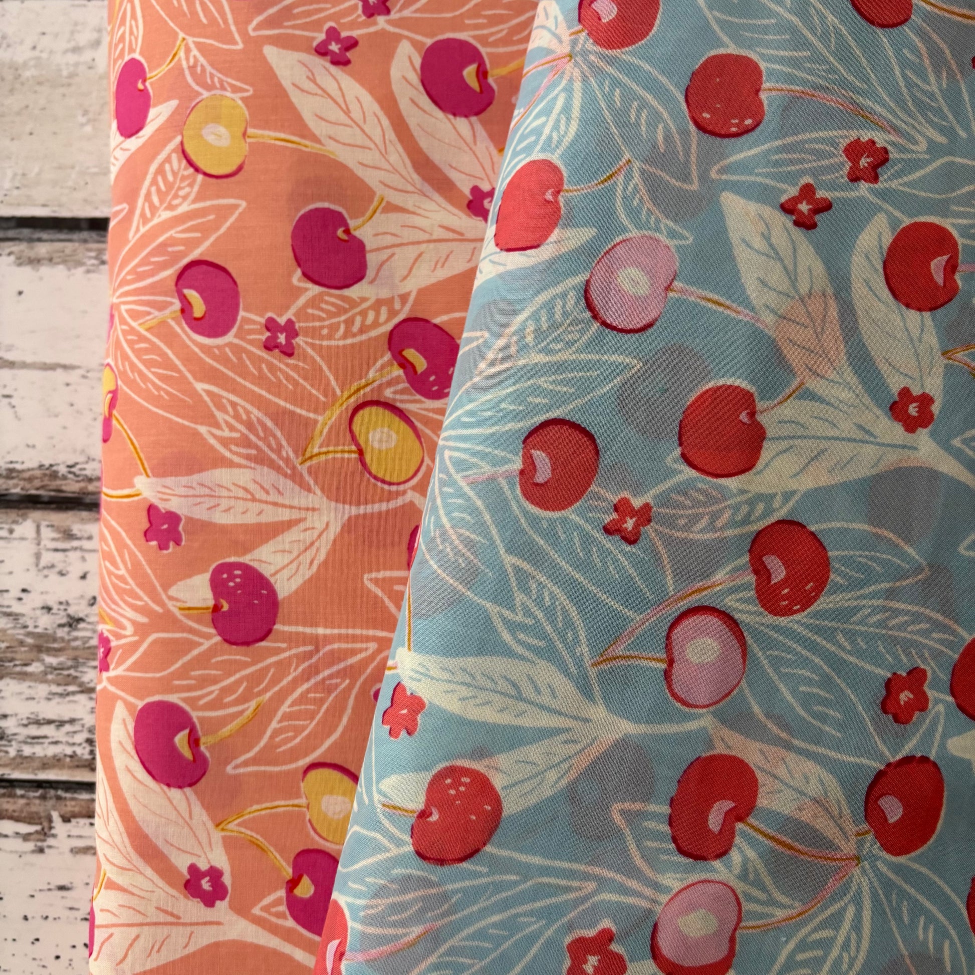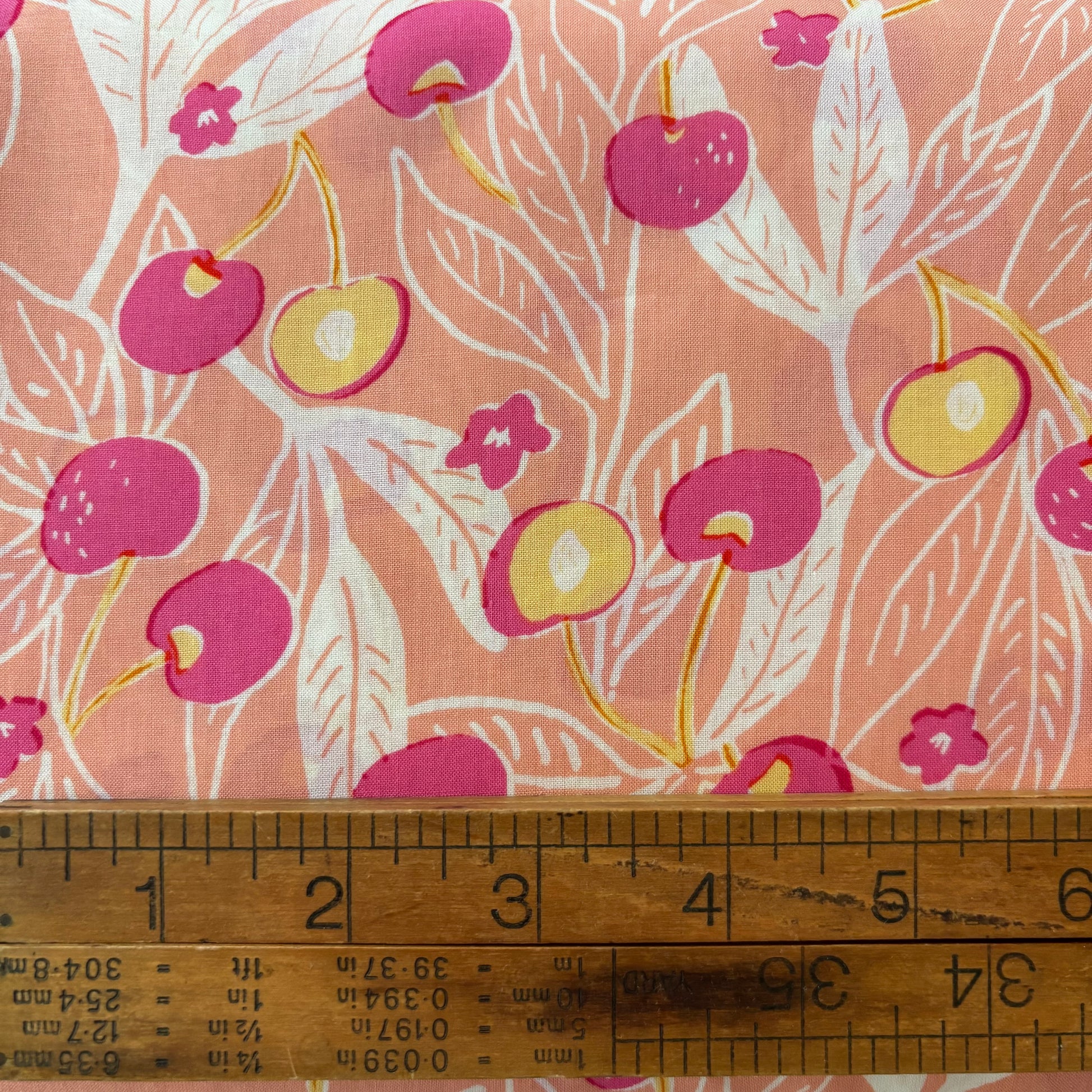 Pink / Peach Cherries - Japanese Cotton Printed Lawn