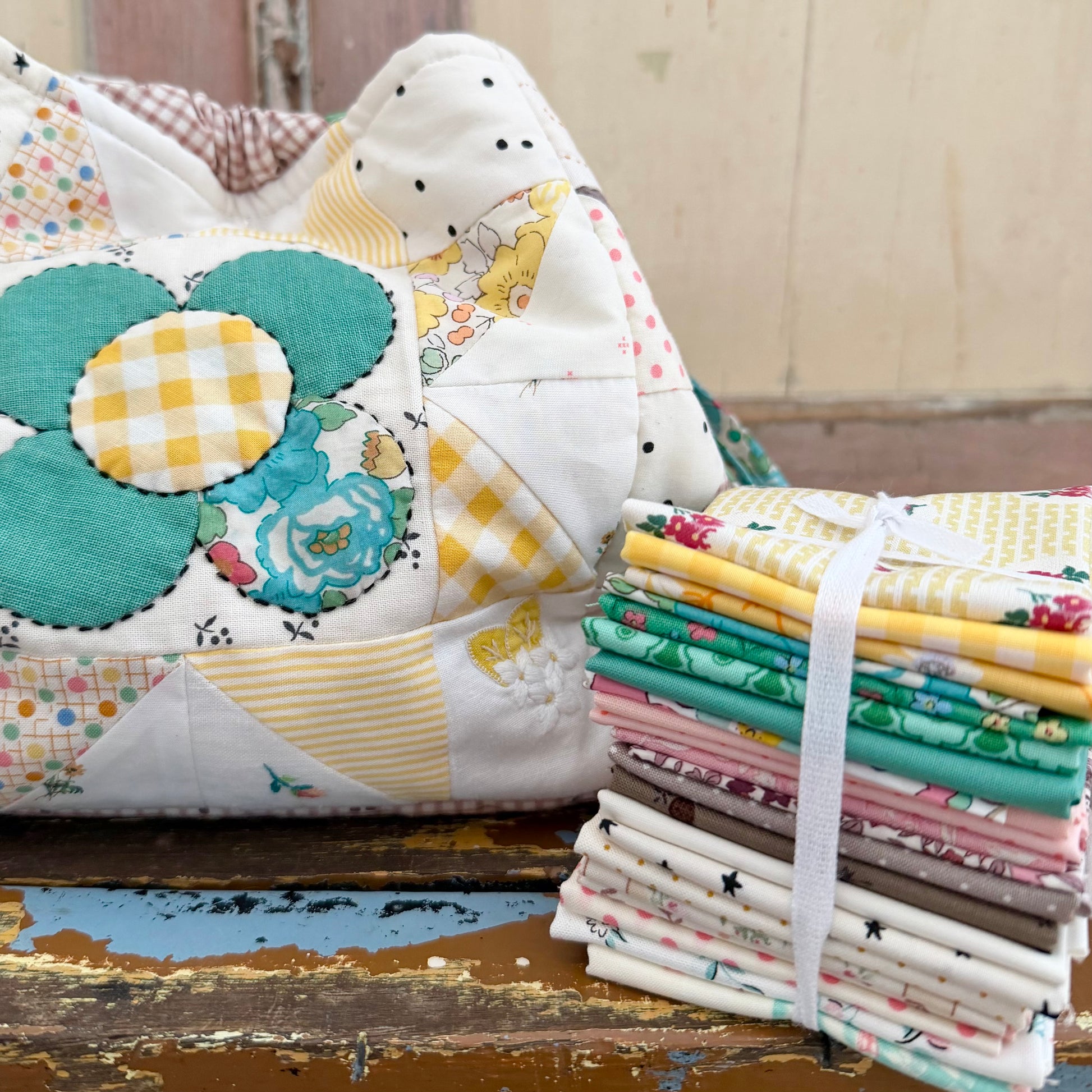 This gorgeous bundle has been inspired by the Summertime Dilly Bag made by Bec (shown in the photos)) and includes many of the same fabrics used by Bec.