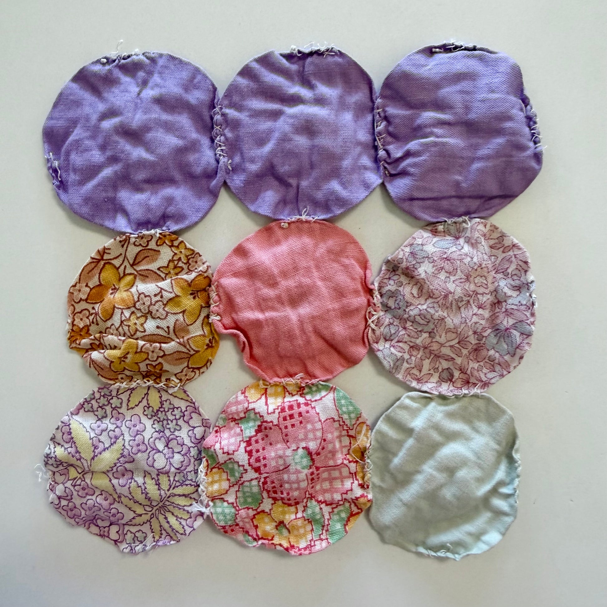 A collection of lovely yo-yos from a found vintage quilt. These gorgeous vintage fabrics are sure to make you incredibly happy. Perfect to include in your next slow stitch project!