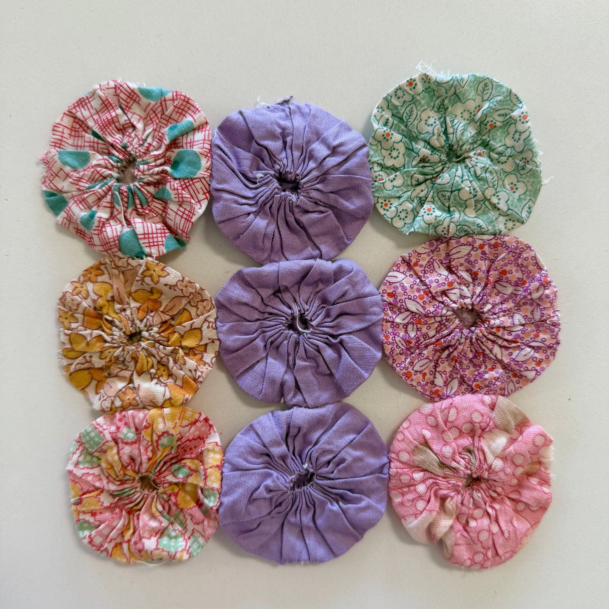 Note these fabrics are from the 1930’s and 40’s. The yo-yos are in fabulous condition but may have signs of age.