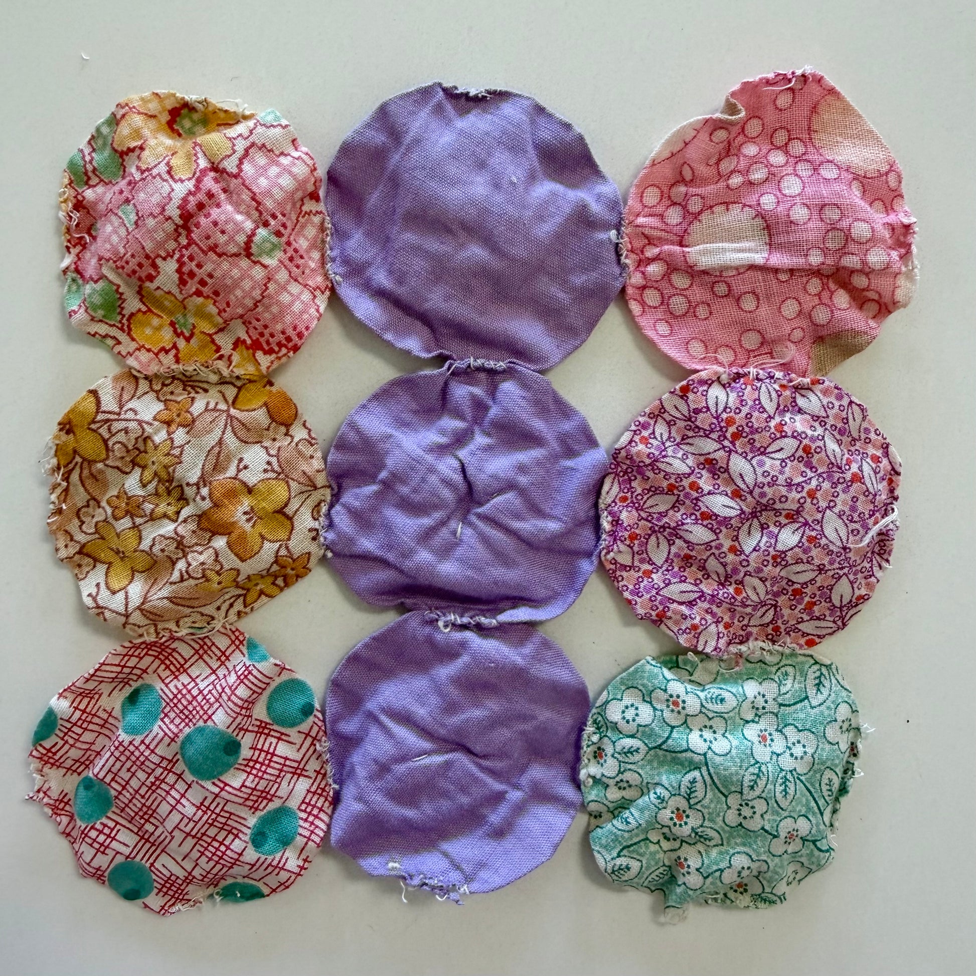 A collection of lovely yo-yos from a found vintage quilt. These gorgeous vintage fabrics are sure to make you incredibly happy. Perfect to include in your next slow stitch project!